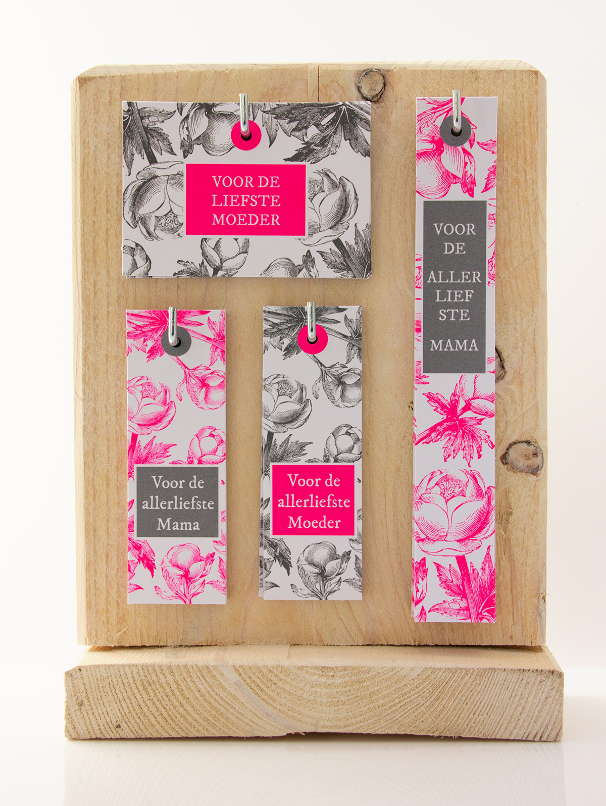 Onze nieuwe moederdag display bestaat uit 4 verschillende kaartjes, 40 stuks in totaal.